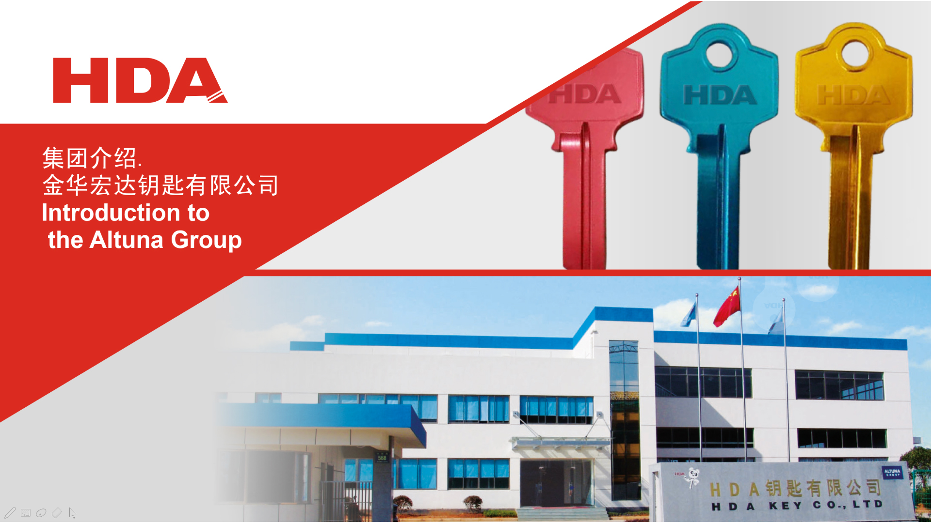 2005年,與歐洲三大鑰匙坯生產企業之一的西班牙JMA集團成立合資公司--金華HDA鑰匙有限公司。 2007年,轉為西班牙JMA集團獨資子公司。